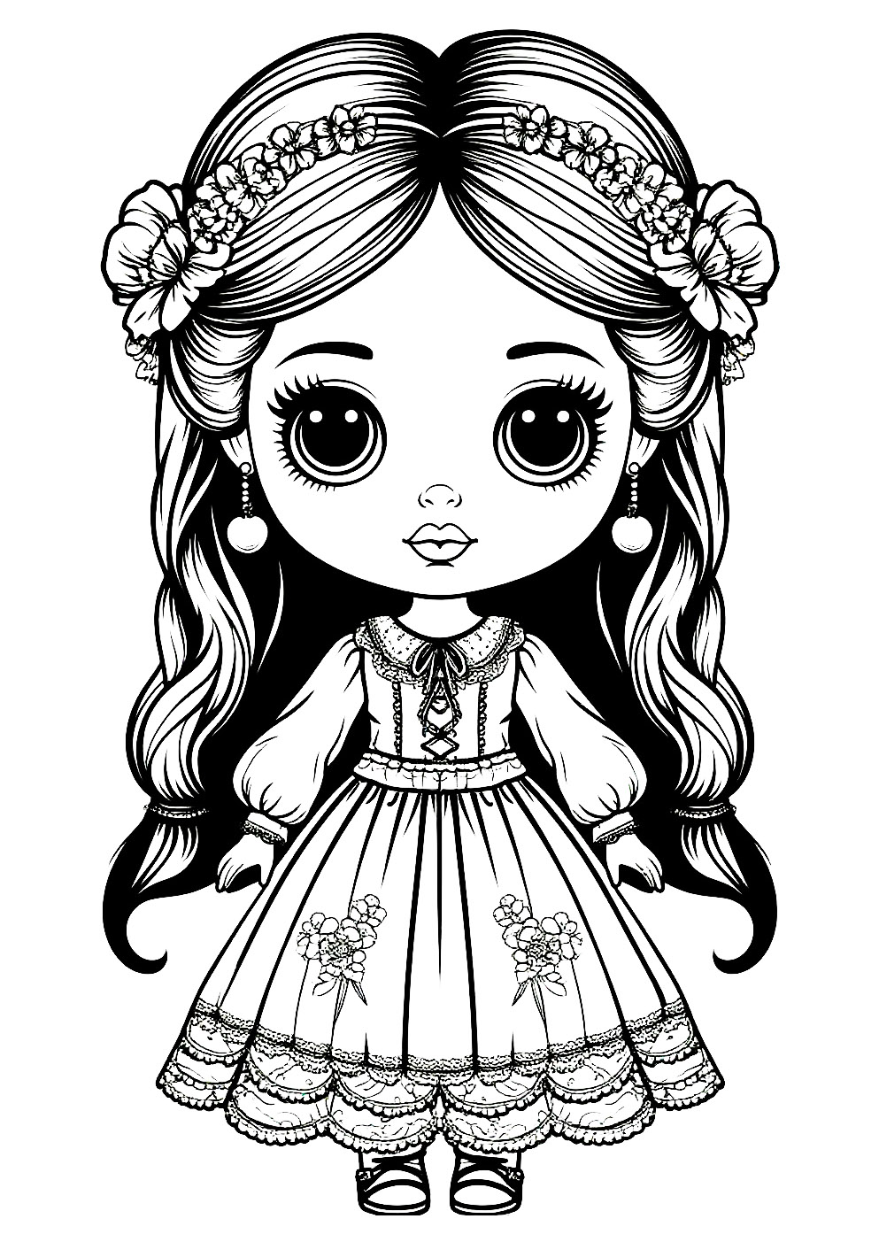 Скачивайте или распечатывайте онлайн раскраску Красивая кукла с большими глазами с сайта Детский Класс