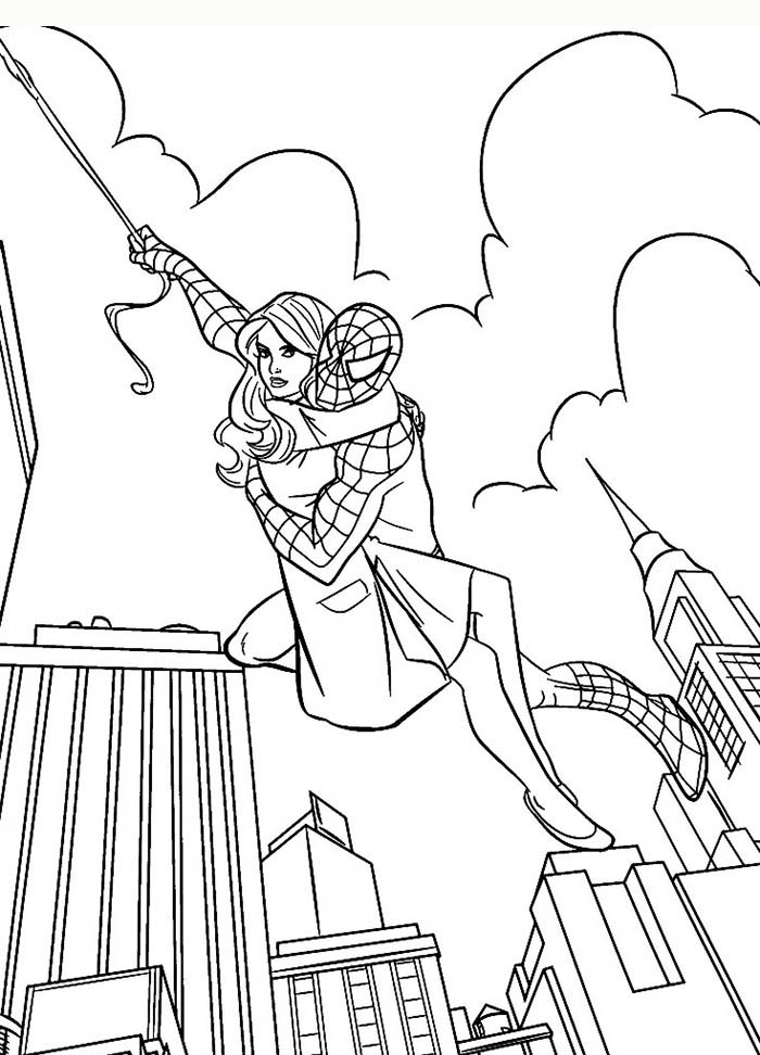 Скачивайте или распечатывайте онлайн раскраску Человек Паук спасает Мэри Джейн с сайта Детский Класс