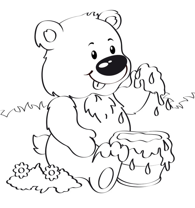Скачивайте или распечатывайте онлайн раскраску Медвежонок ест мед с сайта Детский Класс