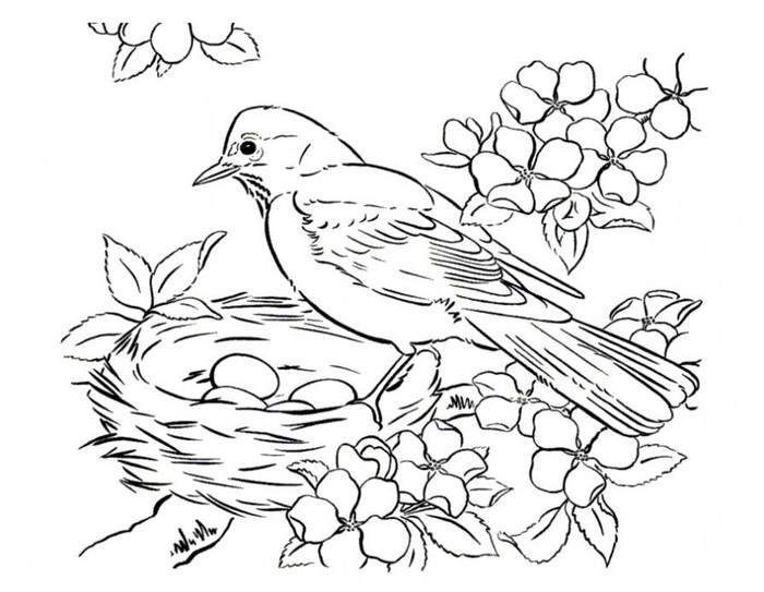 Скачивайте или распечатывайте онлайн раскраску Птица в гнезде с сайта Детский Класс