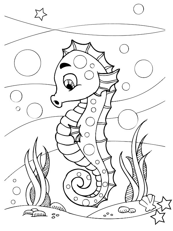 Скачивайте или распечатывайте онлайн раскраску Морской конек с сайта Детский Класс