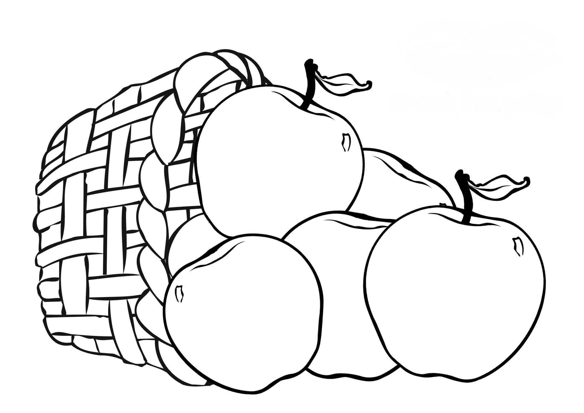 Скачивайте или распечатывайте онлайн раскраску Корзинка и яблоки с сайта Детский Класс
