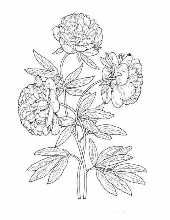 Скачивайте или распечатывайте онлайн раскраску Пионы с сайта Детский Класс
