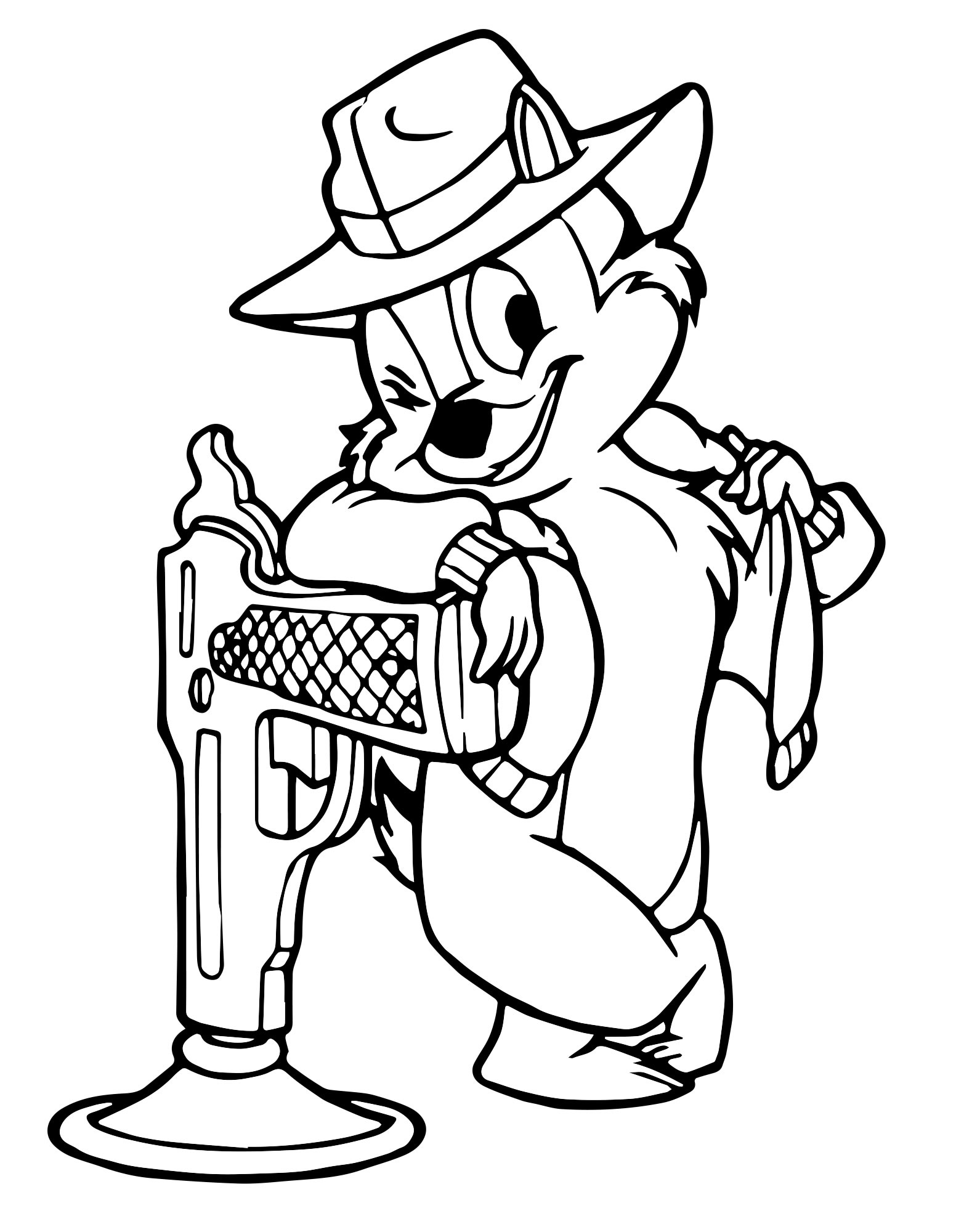 Скачивайте или распечатывайте онлайн раскраску Чип с пистолетом с сайта Детский Класс