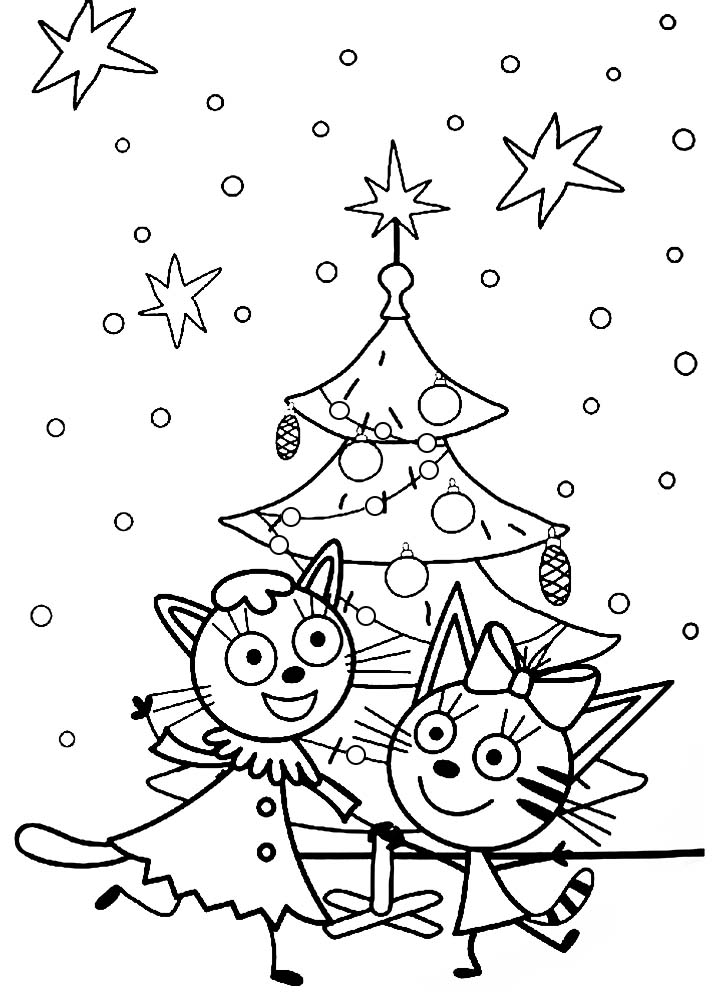 Скачивайте или распечатывайте онлайн раскраску Три Кота - новогодняя с сайта Детский Класс